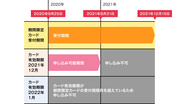 (例)期間限定カードの受付期間が2020年9月25日~2021年12月15日の場合